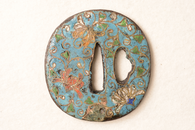 真鍮地 平田七宝鐔 竪丸形 七宝