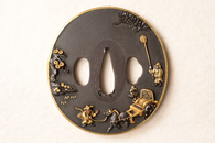鉄地 平田七宝鐔 竪丸形 泥七宝