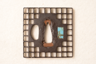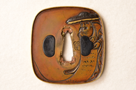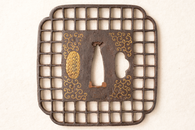 真鍮地 撫角形 片切彫 金烏金象嵌